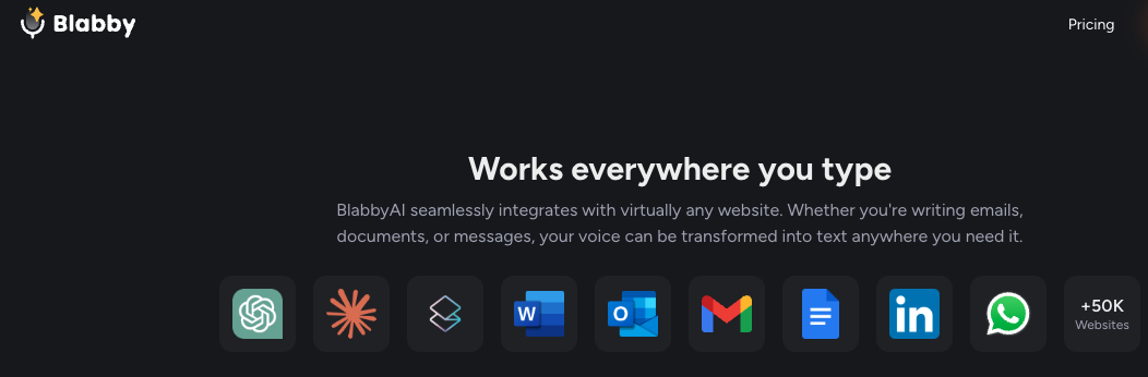 Wat BlabbyAI onderscheidt van andere voice-to-text tools is de naadloze integratie. In plaats van een aparte applicatie te openen, kun je de extensie eenvoudig gebruiken binnen elk tekstveld op een website. Van Gmail tot Google Docs, en zelfs LinkedIn en Outlook — de extensie voegt een microfoonicoontje toe aan elk tekstveld. Je hoeft enkel te klikken, te praten en je woorden verschijnen automatisch. Dit maakt het transcriberen van gedachten niet alleen sneller, maar ook gemakkelijker.